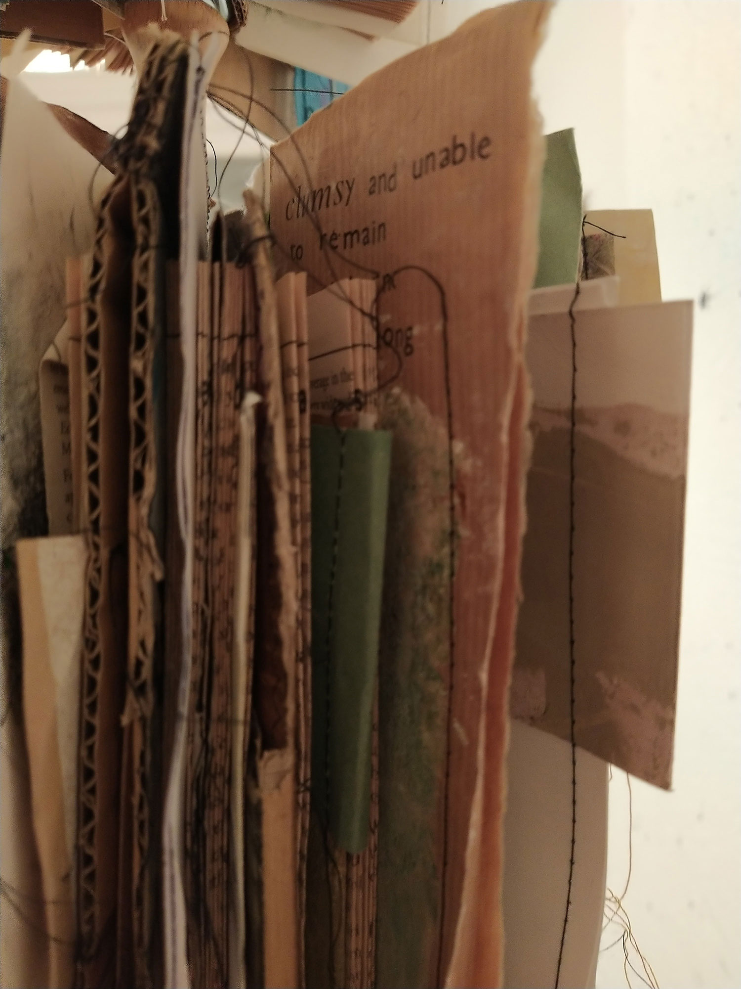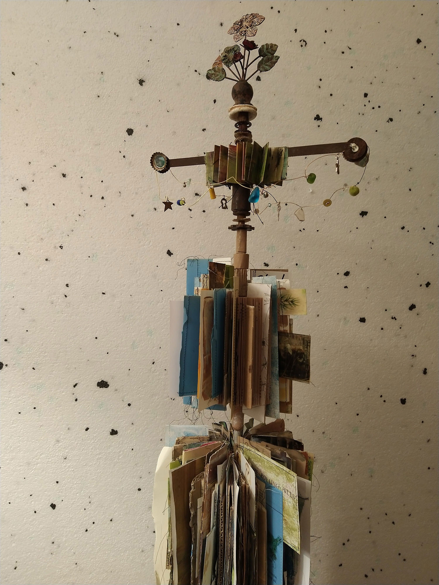 This work can include old, reused, reloved and found objects that bring their own history which -including paper, fabric and stitch – becomes part of the new work.