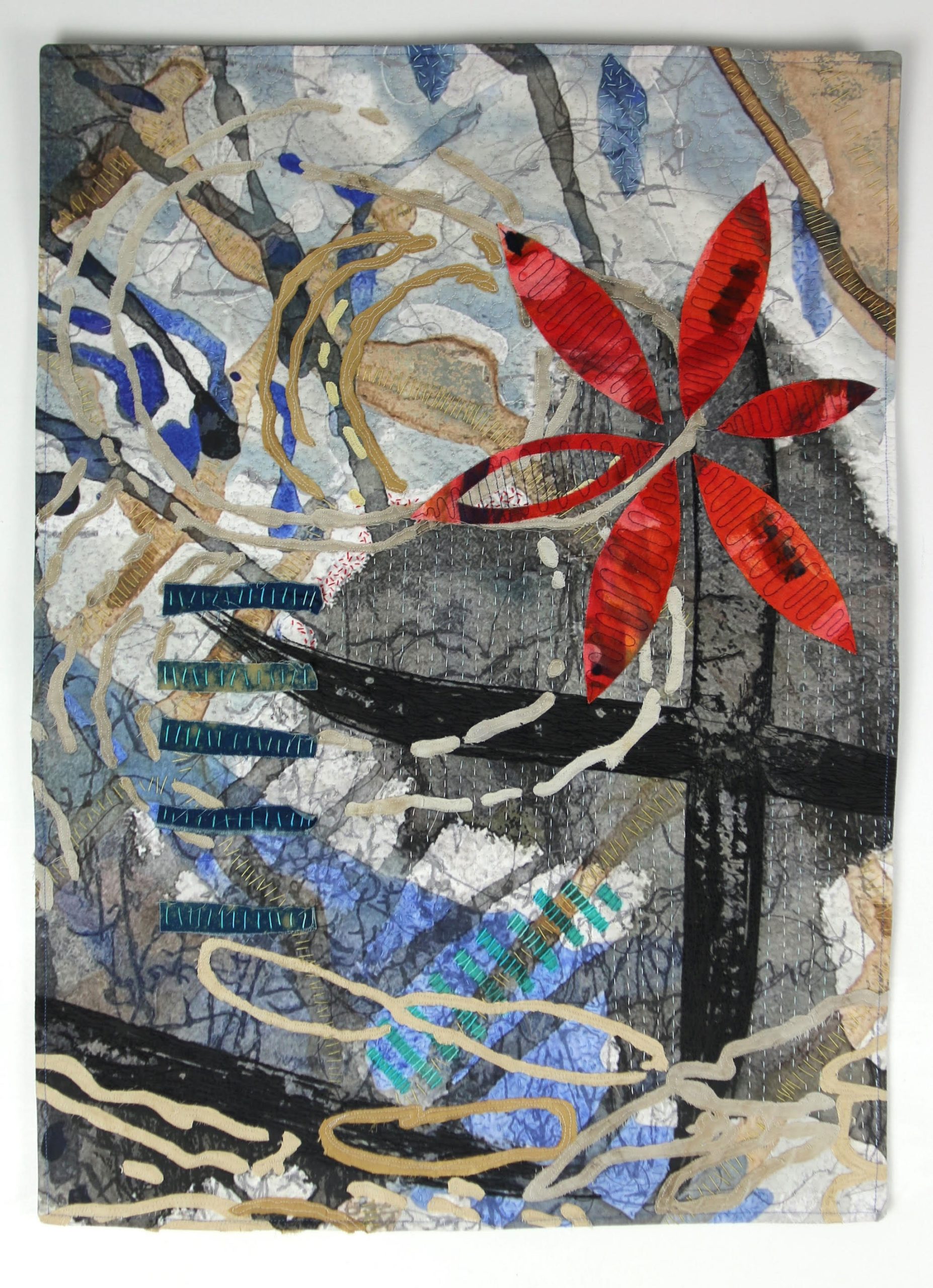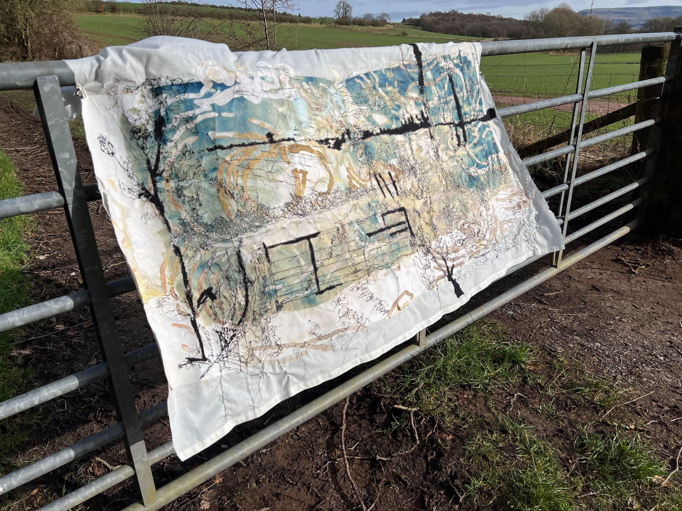 Many of my pieces are constructed from fabrics with history and often coloured or altered by the environment which inspires them. These materials carry memory, grounding the work whilst they are transformed with new narratives.